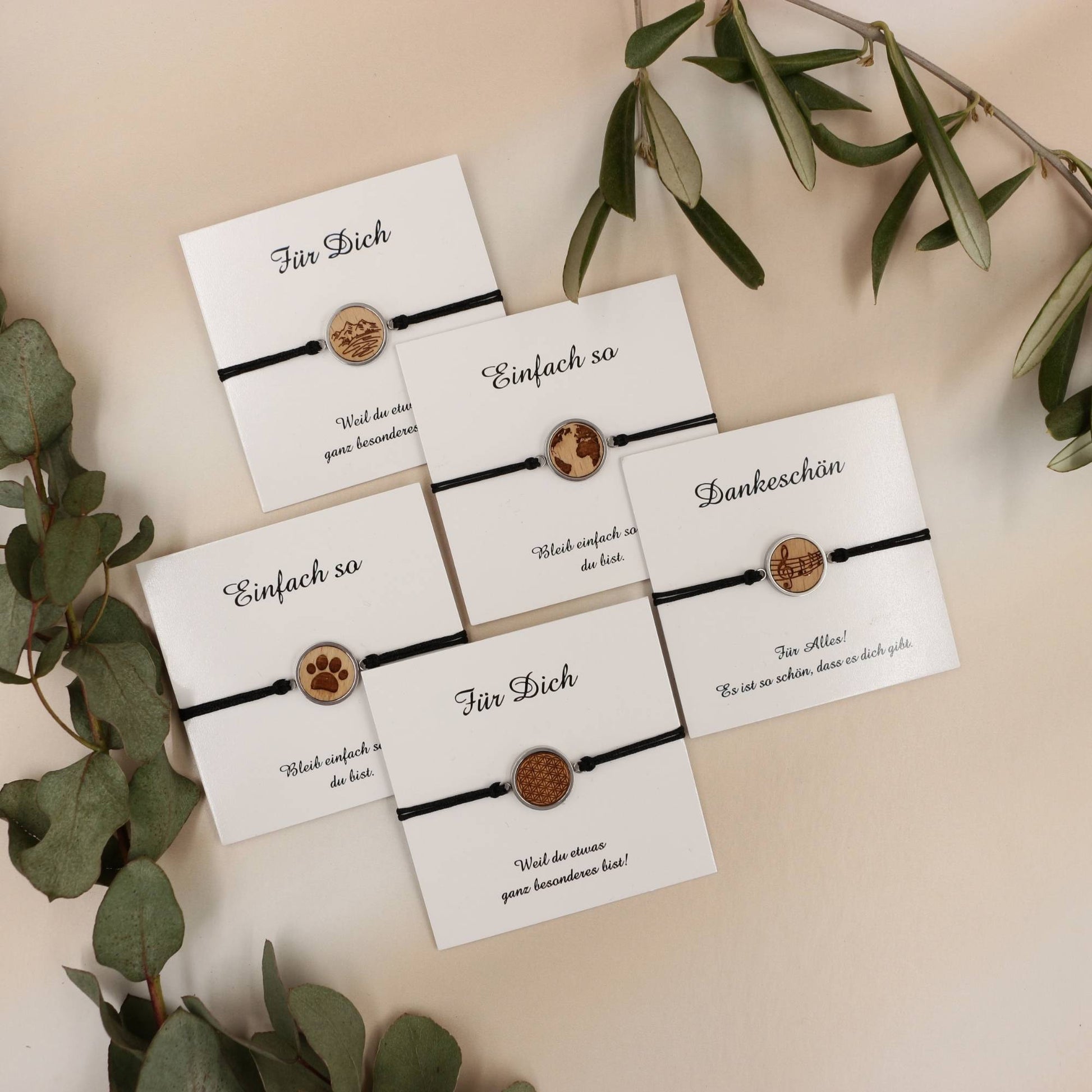 Das Armband aus österreichischem Buchenholz ist ein besonderer Alltagsbegleiter. Das Motiv wird detailreich auf das Holz graviert und macht das Armband zu etwas ganz besonderem.