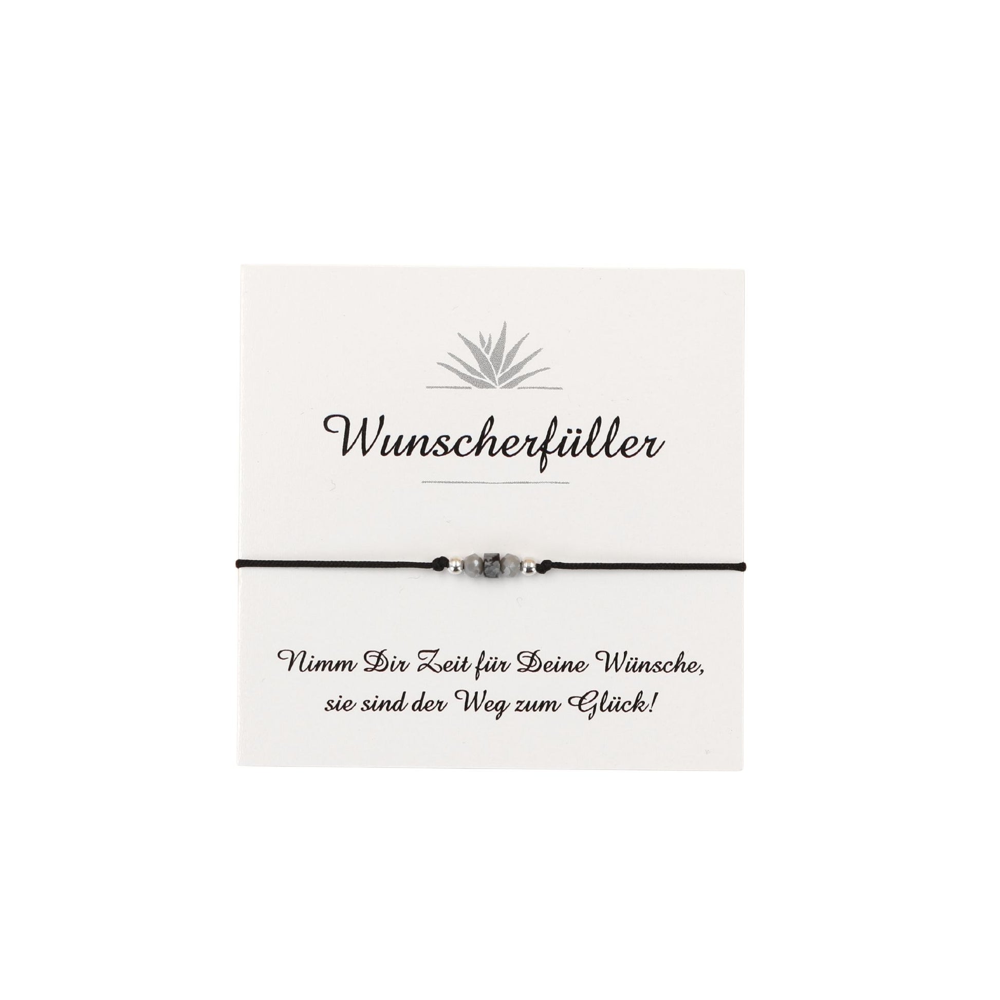 Die Armbänder sind auf einer Geschenkkarte mit dem Spruch: "Nimm Dir Zeit für Deine Wünsche, sie sind der Weg zum Glück!" angebracht.